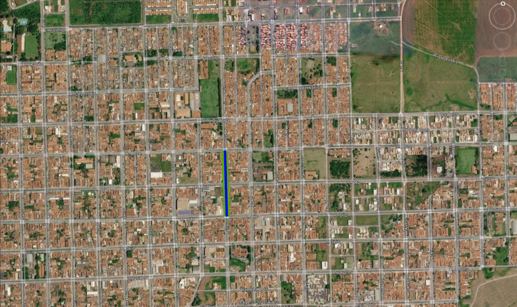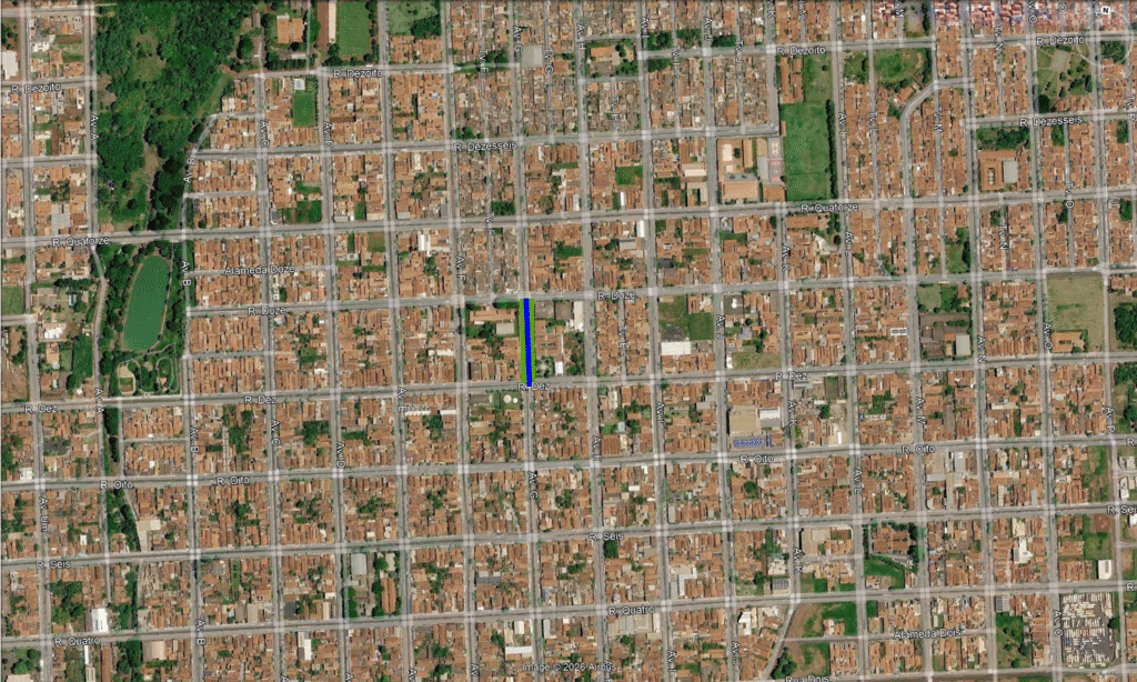 Linha Azul Extensão total onde a nova rede será implantada. Linha Verde Trechos onde a obra já foi executada e aguarda a repavimentação ou a recomposição de grama do canteiro central. Pinos Vermelhos Indicam os locais onde as equipes estão trabalhando no momento.